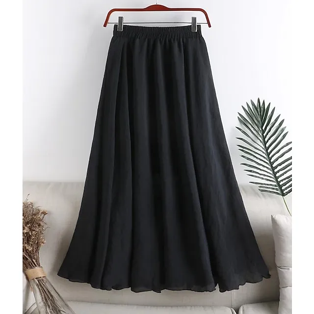 Women’s Pleated Long Skirt Linen / Cotton Blend Black White Pink Blue Skirts Spring & Summer Ruched Fashion Casual Daily Going out One-Size