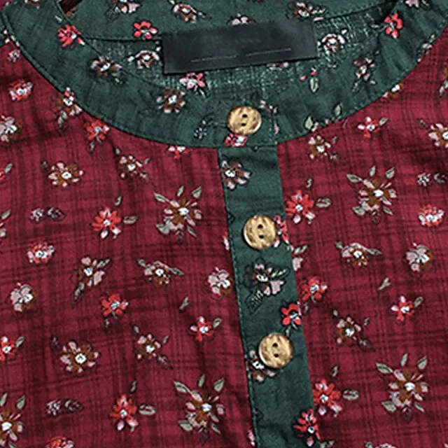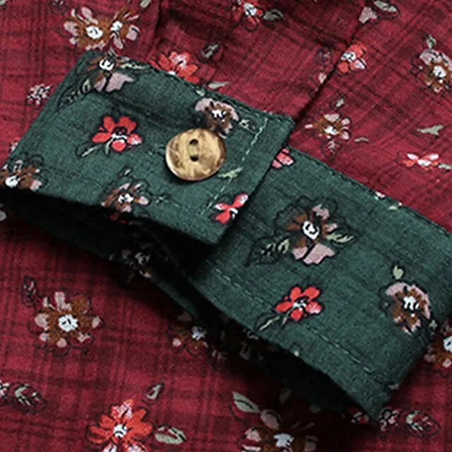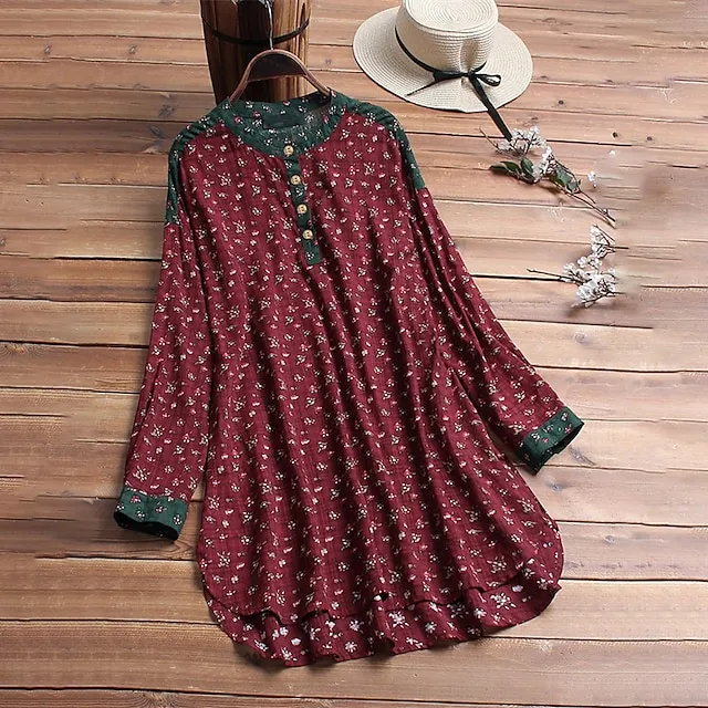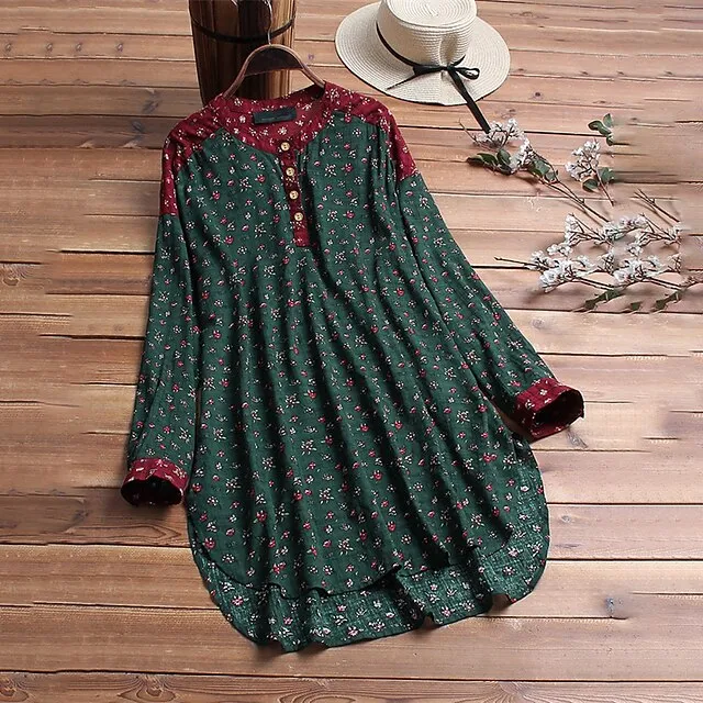 Women’s Plus Size Shirt Blouse Cotton Floral Graphic Daily Vacation Weekend Red Blue Green Print Long Sleeve Holiday Casual Crew Neck Regular Fit Spring Fall Winter