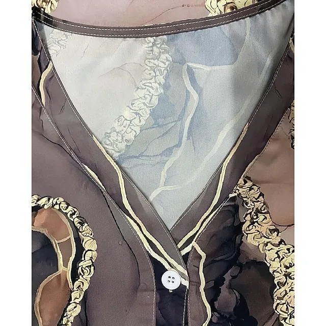 Women’s Shirt Blouse Flower Daily Weekend Khaki Print Button Long Sleeve Streetwear Casual V Neck Regular Fit Spring Fall