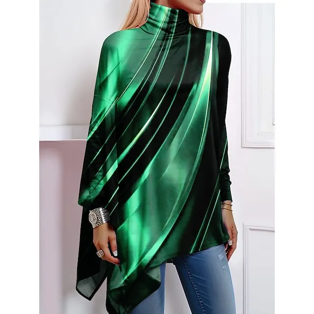 Women’s Shirt Blouse Graphic Casual Pink Red Blue Print Asymmetric Hem Long Sleeve Fashion High Neck Regular Fit Spring & Fall