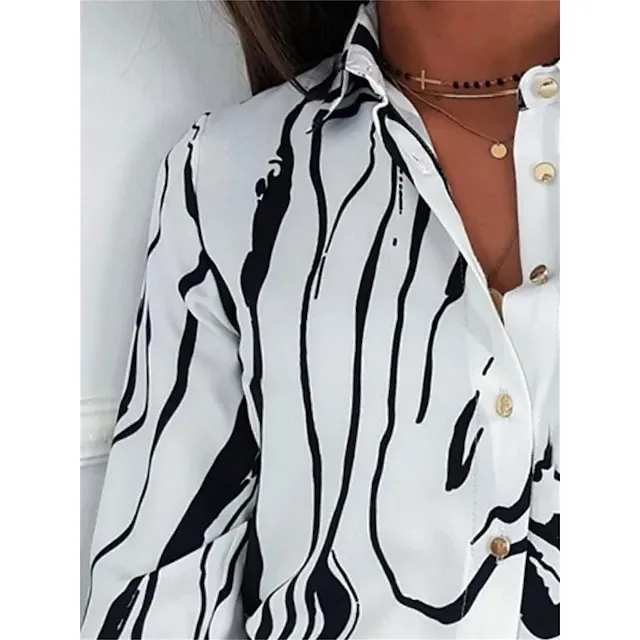 Women’s Shirt Blouse Graphic Casual White Button Print Long Sleeve Elegant Fashion Daily Shirt Collar Regular Fit Fall & Winter