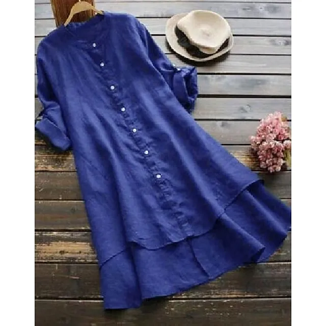 Shirt Blouse Women’s Blue Solid Color Button Daily Daily Round Neck Regular Fit S