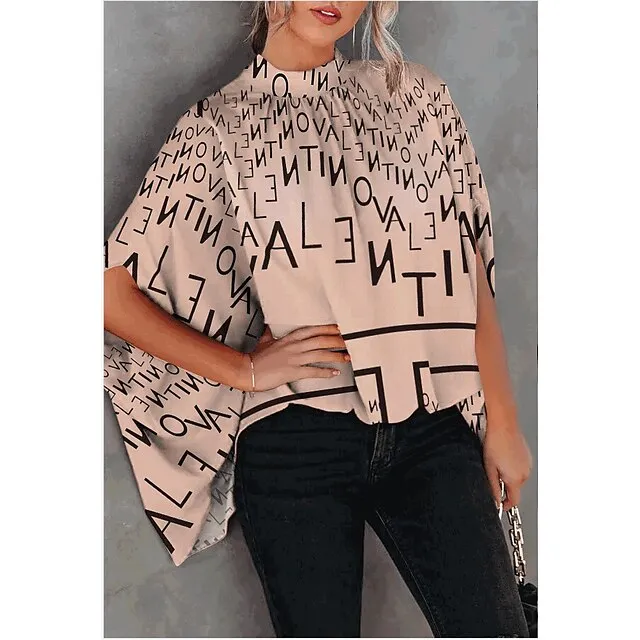 Women’s Shirt Blouse Tie Dye Letter Portrait Casual Going out Black Light Brown Blue Print Short Sleeve Elegant Fashion Streetwear Turtleneck High Neck Loose Fit