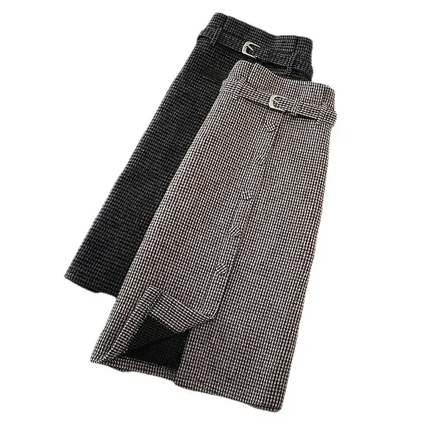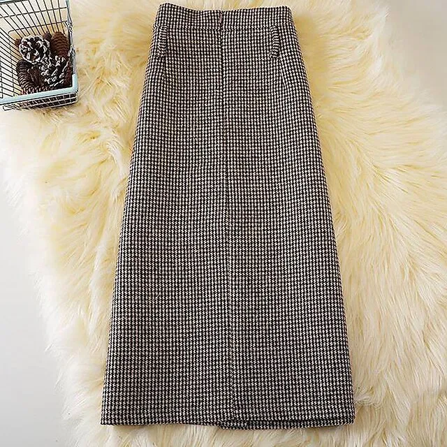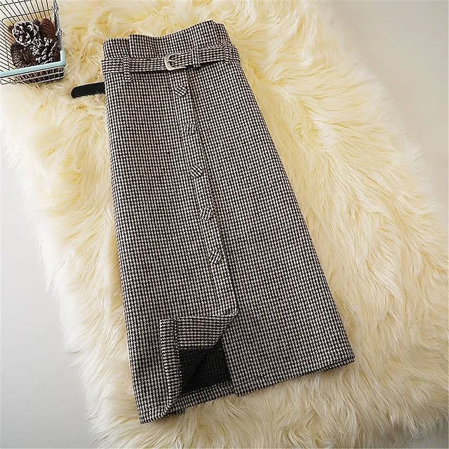 Women’s Skirt A Line Maxi Tweed Black Khaki Button Skirts Fall & Winter Patchwork Belt Included Fashion Elegant Street Daily M L XL