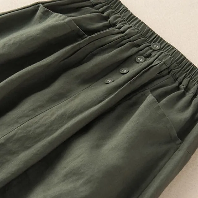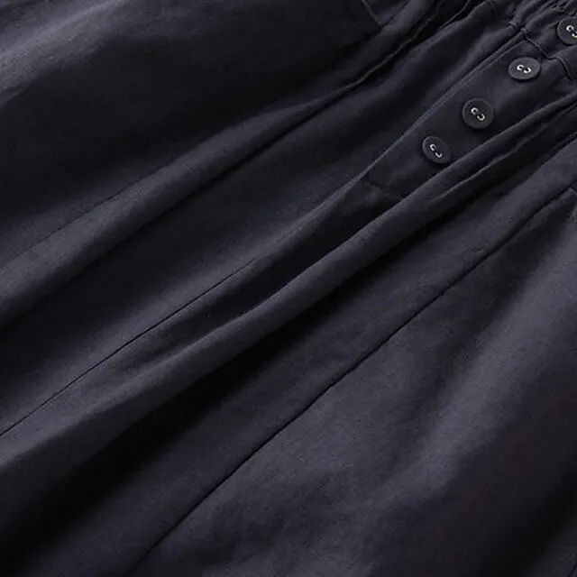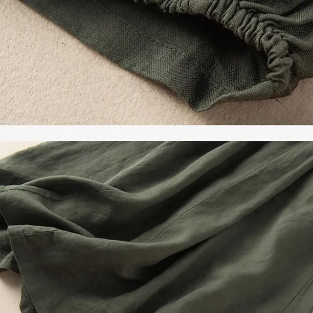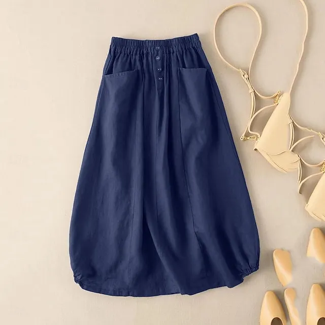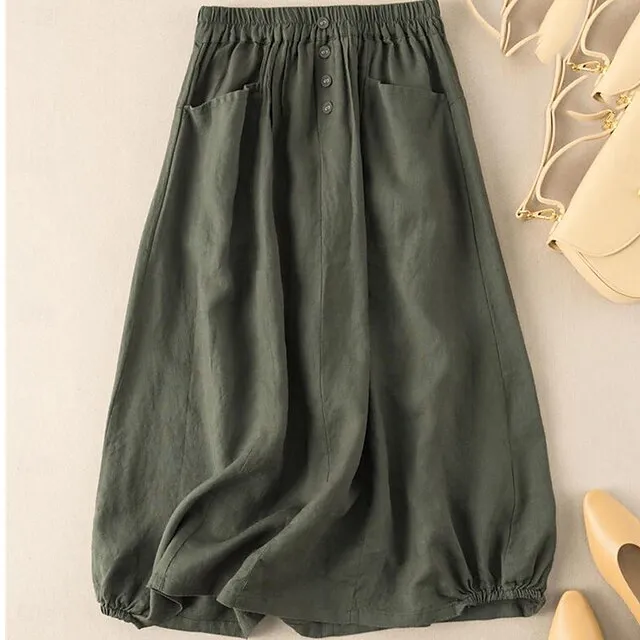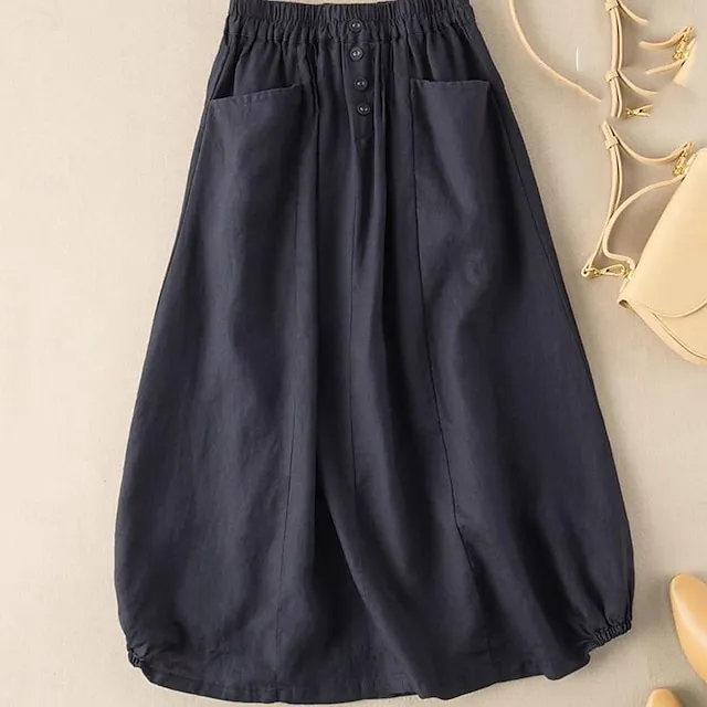 Women’s Skirt A Line Midi Cotton And Linen Black Army Green Navy Blue Khaki Skirts Summer Pocket Basic Casual Casual Daily Weekend M L XL