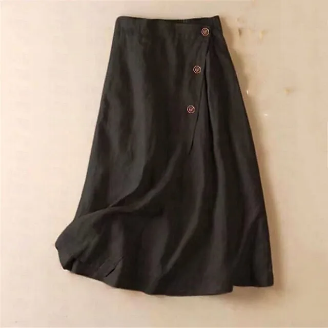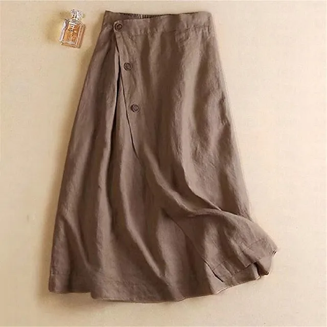 Women’s Skirt A Line Midi Cotton Linen Linen Apricot Black Navy Blue Green Skirts Summer Pocket High Waist Basic Casual Casual Daily Weekend M L XL