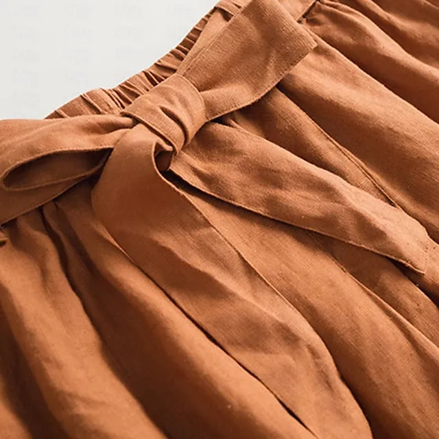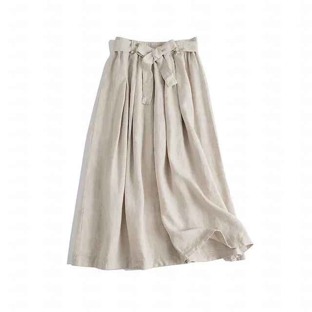 Women’s Skirt Linen Skirts Midi Cotton And Linen Black Pink Blue Khaki Skirts Summer Drawstring Lined Fashion Casual Casual Daily Weekend One-Size