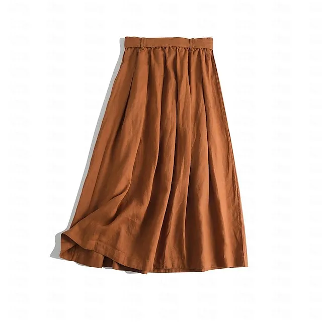 Women’s Skirt A Line Midi Linen Navy Blue Brown Beige Skirts Summer Basic Casual Casual Daily Weekend One-Size
