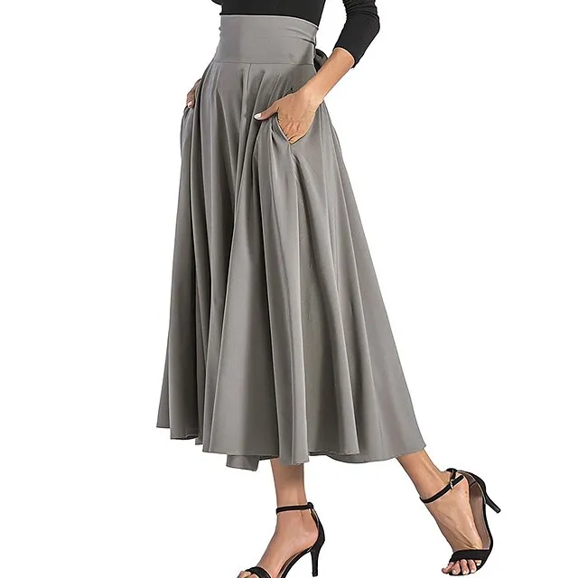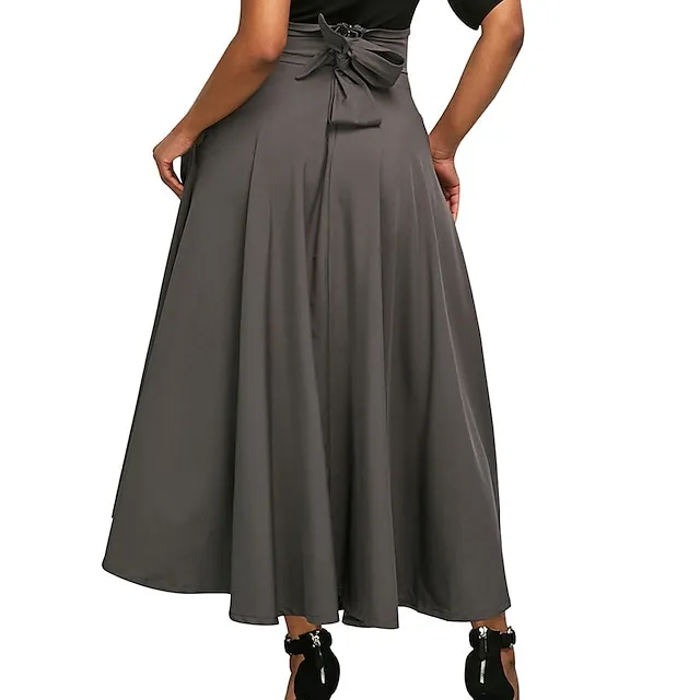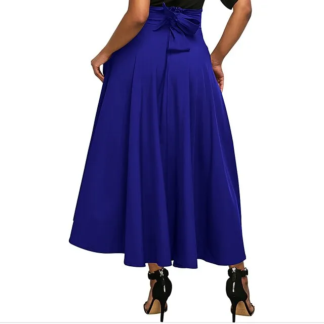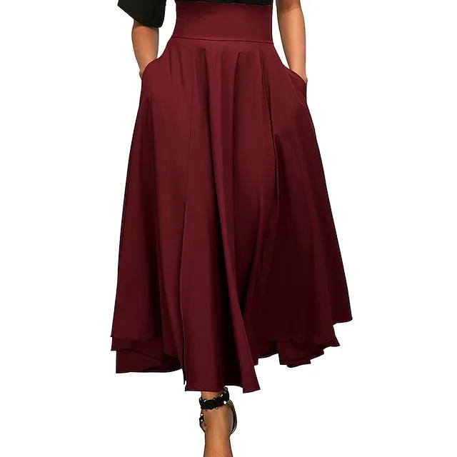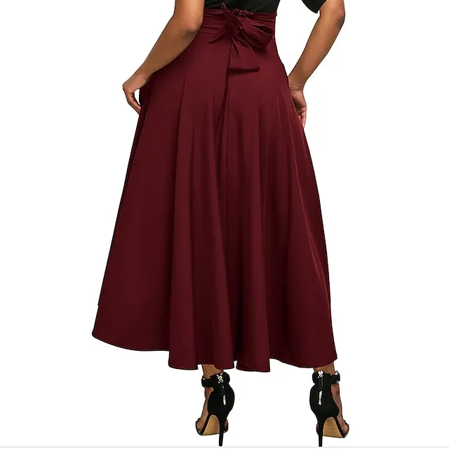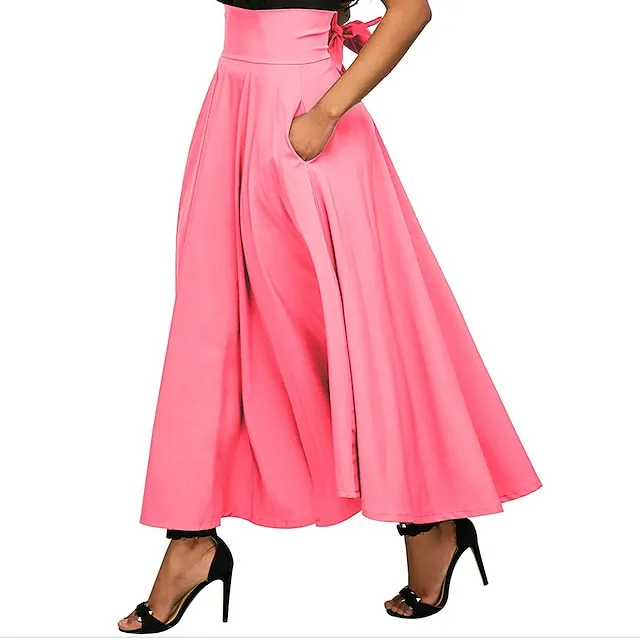 Women’s Skirt A Line Swing Maxi Polyester Wine Red Black Pink Blue Skirts Fall & Winter Pleated Pocket Bow High Waist Elegant Vintage Fashion Street Daily S M L
