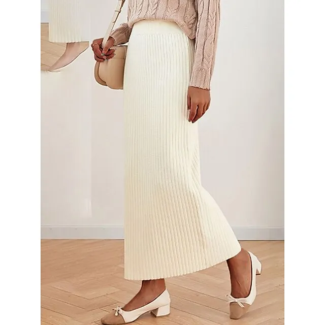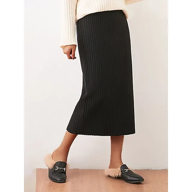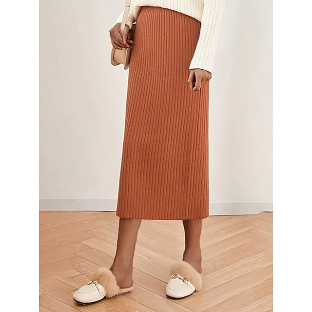 Women’s Skirt Bodycon Midi Acrylic Camel Black White Wine Skirts Winter Pleated Fashion Casual Street Daily One-Size