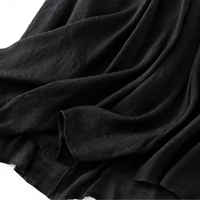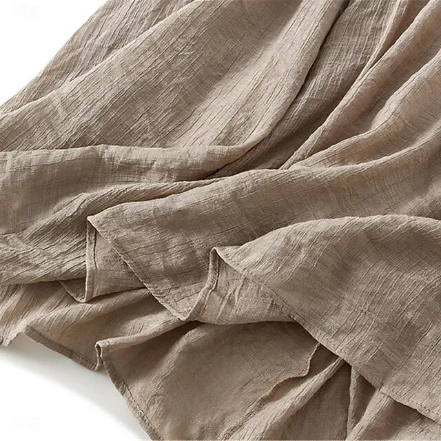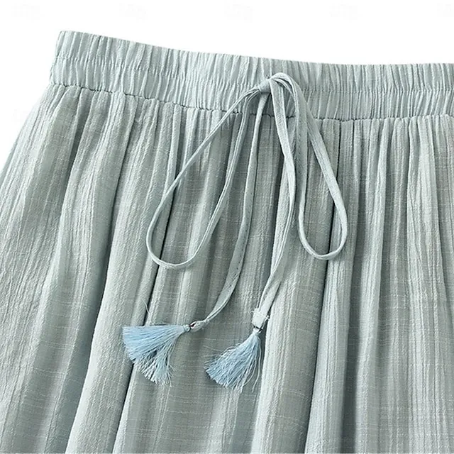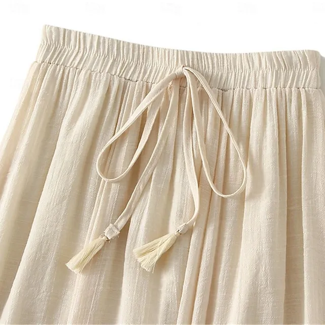 Women’s Skirt Linen Skirts Midi Cotton And Linen Black Pink Blue Khaki Skirts Summer Drawstring Lined Fashion Casual Casual Daily Weekend One-Size