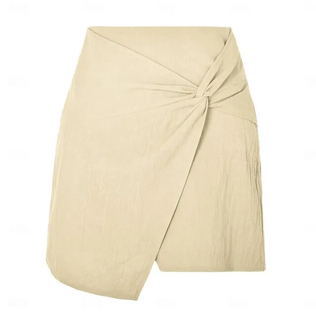 Women’s Skirt Linen Skirts Mini Cotton And Linen Wine Black Army Green Apricot Skirts Summer Split Ends Basic Casual Casual Daily Weekend S M L