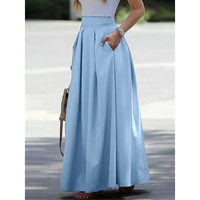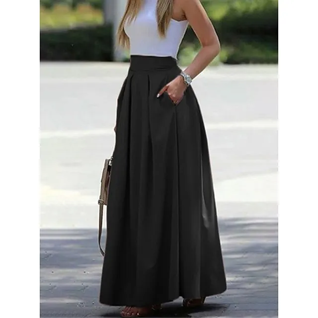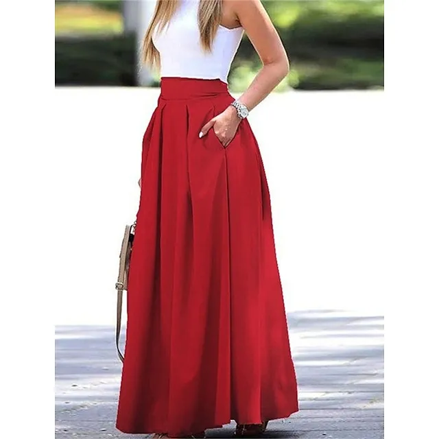 Women’s Skirt Maxi Pleated Black Yellow Pink Red Skirts Pocket Fashion Casual Daily Date M L XL