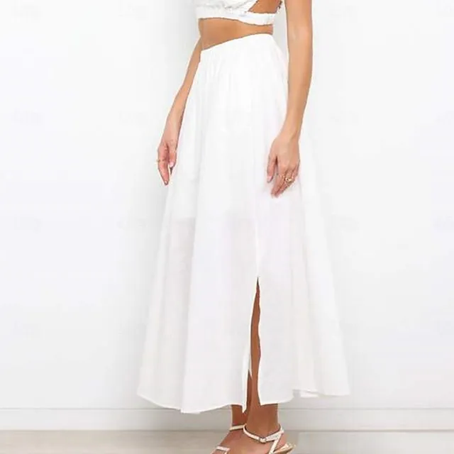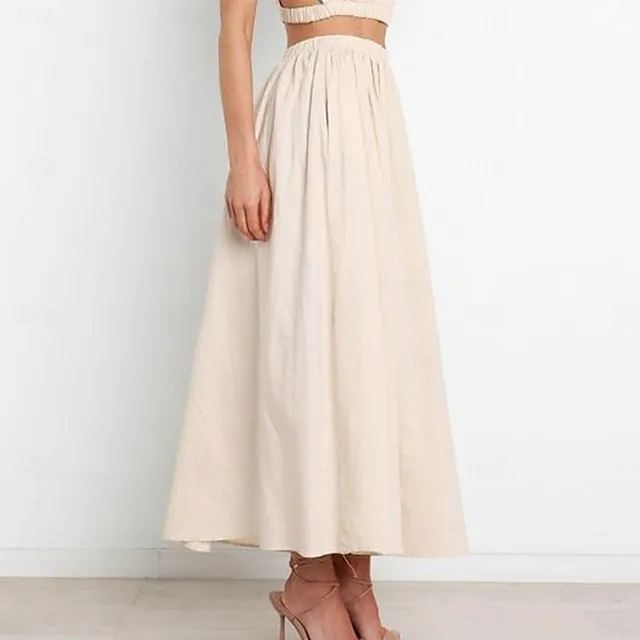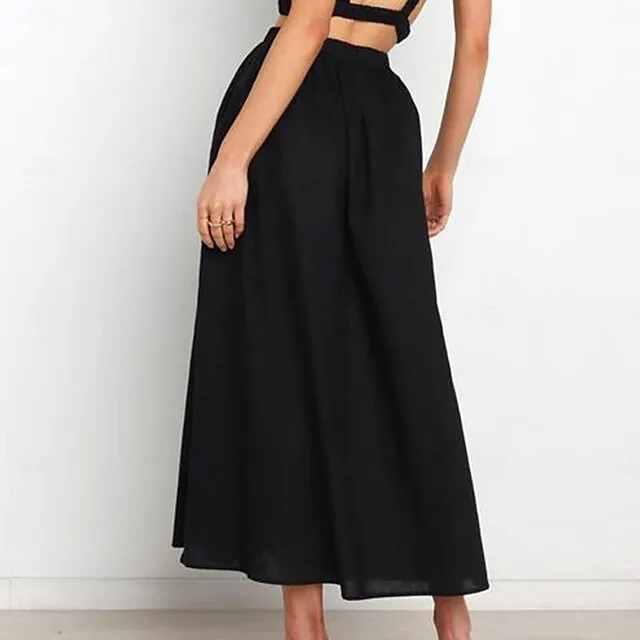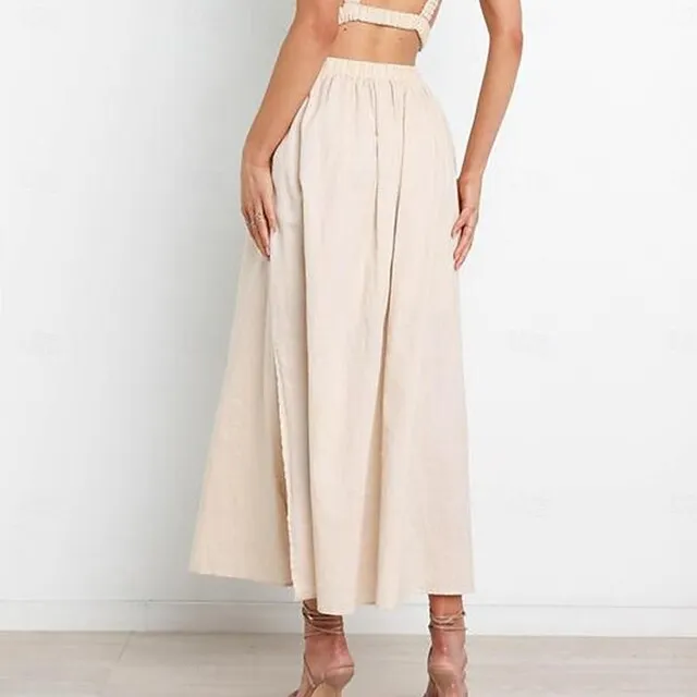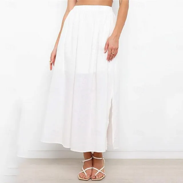 Women’s Skirt Swing Maxi Cotton Linen Black White Apricot Skirts Summer Pocket High Waist Basic Casual Casual Daily Weekend S M L