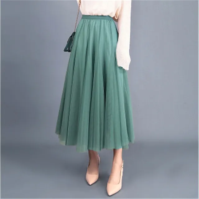 Women’s Skirt Swing Maxi Tulle Skirts Apricot Green Lake Black White Skirts Fall & Winter Ruched Fashion Casual Street Daily S M L