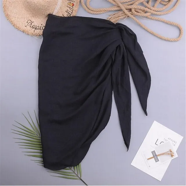 Women’s Skirt Wrap Skirt Mini Polyester Cotton Linen Black White Skirts Summer Beach Wear Casual Vacation Beach One-Size