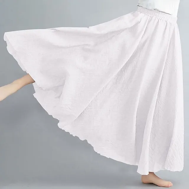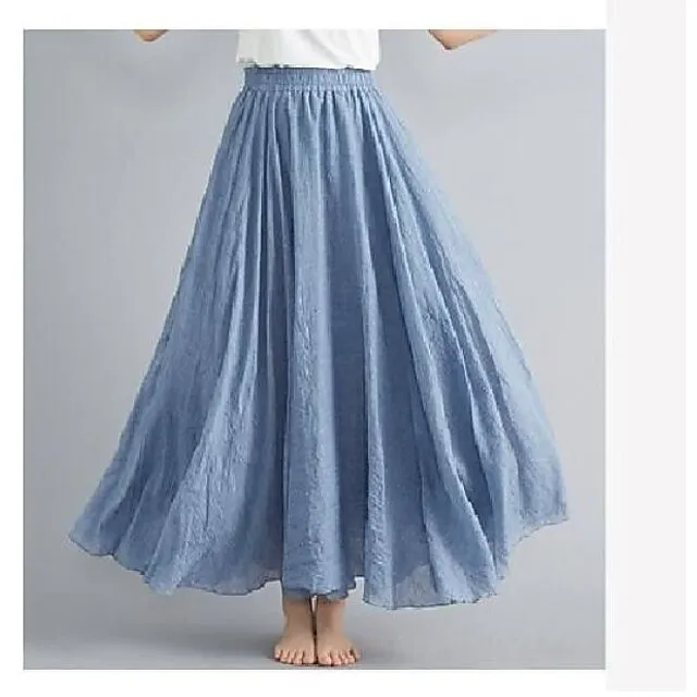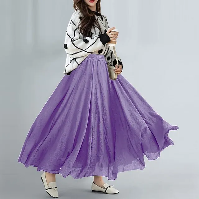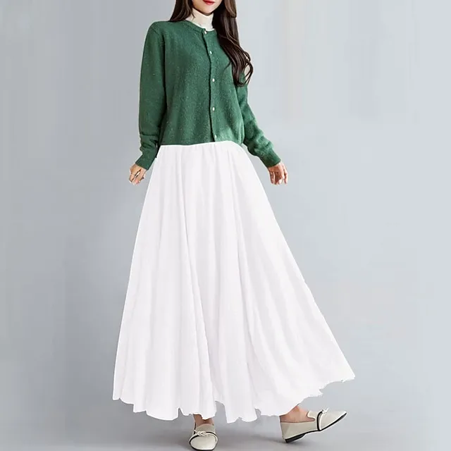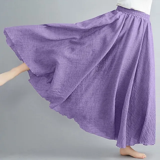 Women’s Swing Long Skirt Maxi Cotton Cotton And Linen Black White Yellow Red Skirts Spring & Fall Pleated Lined Elegant Summer Casual Daily 85cm 95cm