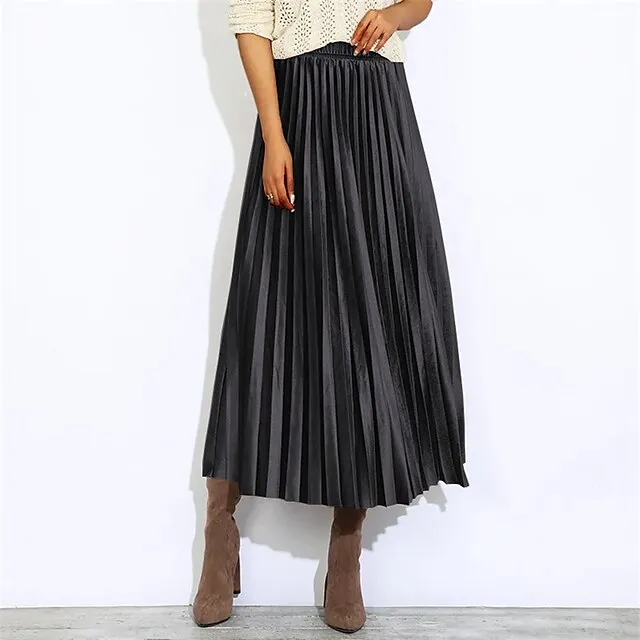 Women’s Swing Long Skirt Midi Gold Velvet Black Champagne Silver Gray Green Skirts Spring & Fall Pleated Shiny Metallic Lined Elegant Shiny Holiday Casual Daily S M L