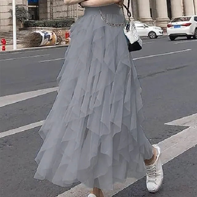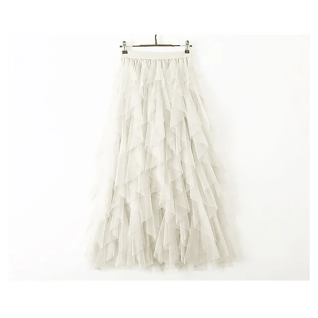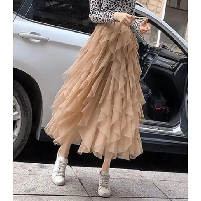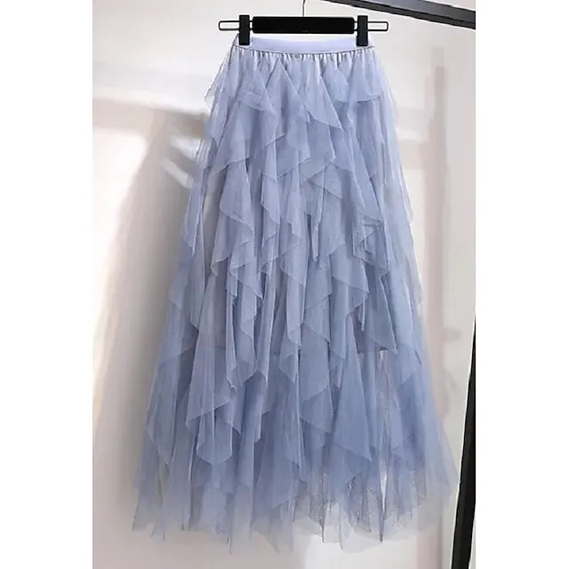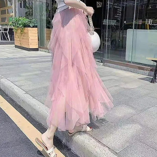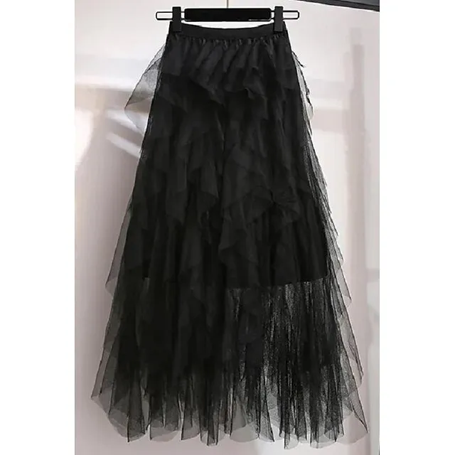 Women’s Tulle Skirt Midi Chiffon Almond Black White Pink Skirts Irregular Hem Daily Street Party One-Size