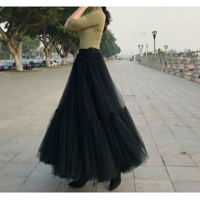 Women’s Tutu Long Skirt Maxi Black White Pink Skirts Patchwork Long Casual Daily M/L/ XL