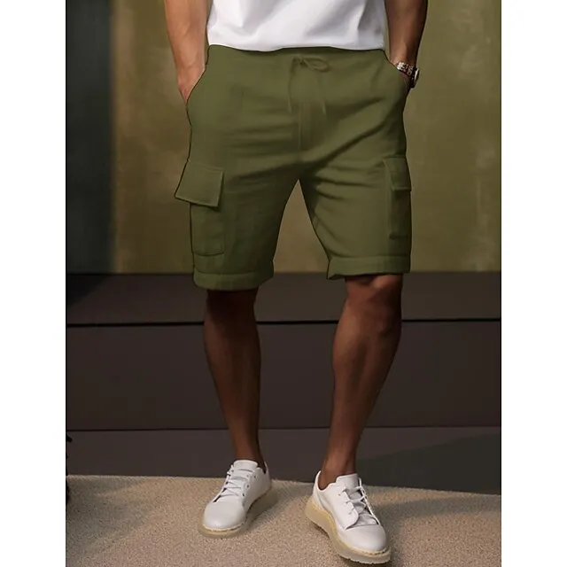 40% Linen Men’s Shorts Linen Shorts Summer Shorts Drawstring Elastic Waist Multi Pocket Plain Breathable Comfortable Short Daily Vacation Going out Classic Casual Black White