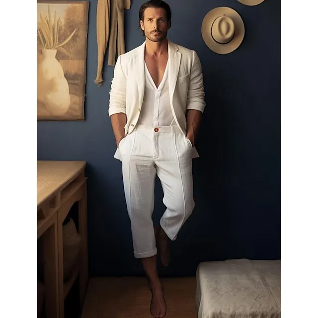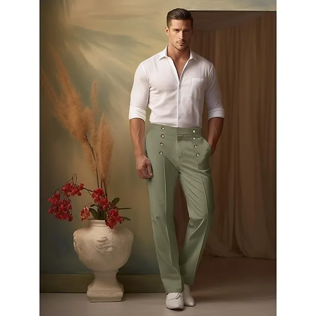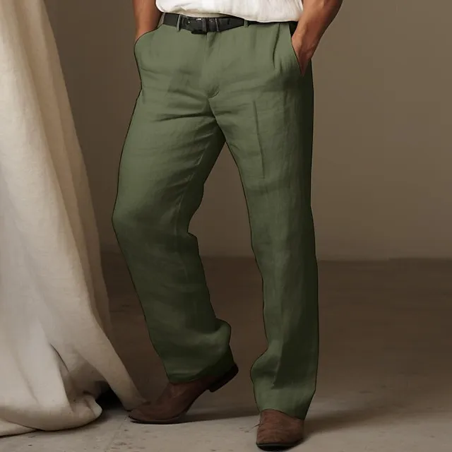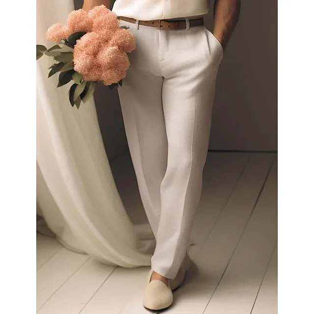 40% Linen Men’s Linen Pants Trousers Summer Pants Pleated Pants Pocket Pleats Straight Leg Plain Breathable Comfortable Office / Career Daily Vacation Classic Casual White Pink