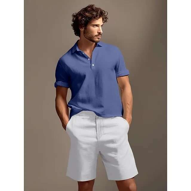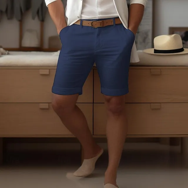 40% Linen Men’s Shorts Linen Shorts Summer Shorts Button Up Pocket Plain Breathable Comfortable Short Daily Vacation Going out Classic Casual White Navy Blue