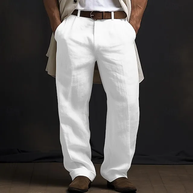 40% Linen Men’s Linen Pants Trousers Summer Pants Pocket Straight Leg Plain Breathable Comfortable Office / Career Daily Vacation Classic Casual Black White