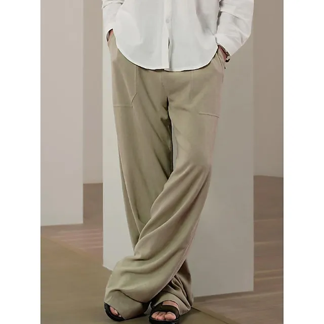 100% Linen Men’s Linen Pants Trousers Drawstring Elastic Waist Straight Leg Plain Comfort Breathable Casual Daily Holiday Fashion Classic Style Beige